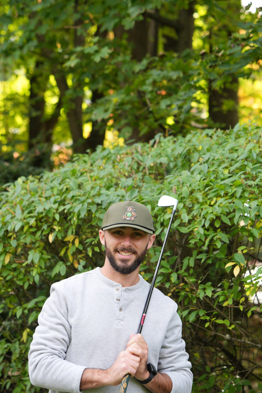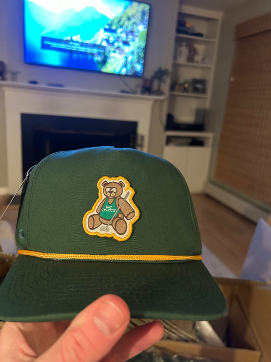 Divots Teddy Bear Branded Bills Hat (Green w/ Black Rope)