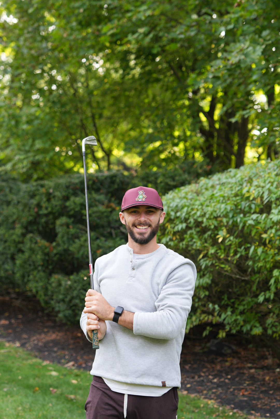 Divots Teddy Bear Branded Bills Performance Hat (Maroon w/ Black Rope)
